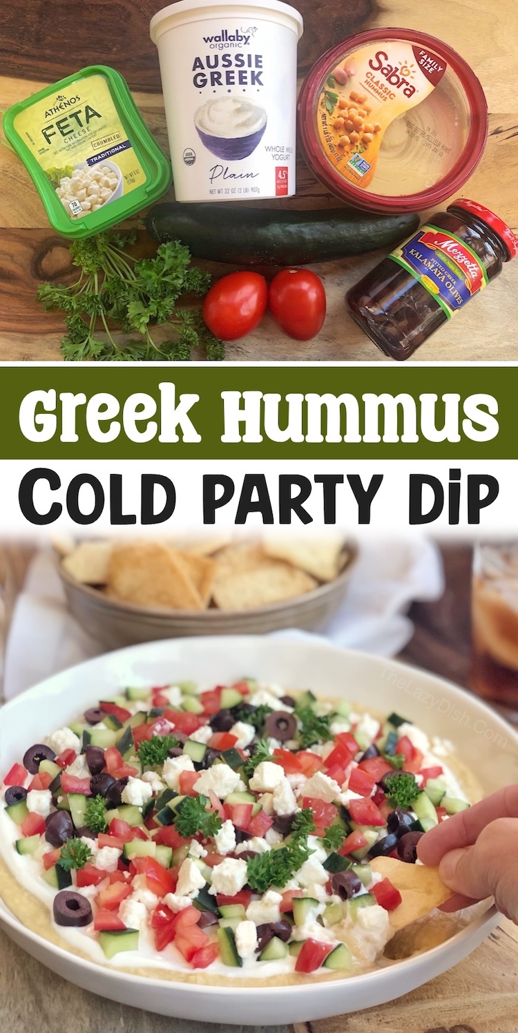 How To Make An Easy Layered Hummus Dip With Greek Yogurt (The BEST Make Ahead Party Appetizer)