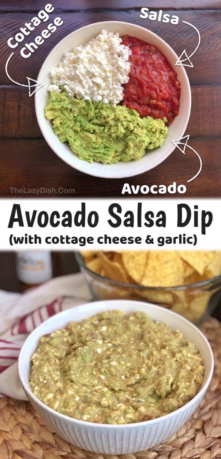 A quick & easy cold party dip made with avocado, salsa, and cottage cheese!